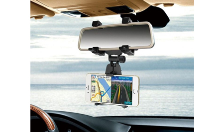 AML Designs creates hands-free mirror device holders that easily attach to your rearview mirror, and keeps your phone above your dash for easy reading.