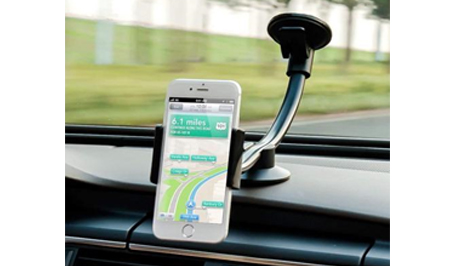 AML Designs makes hands-free device holders that easily attach to your windshield to keep your phone near the top of the dash for easy reading.