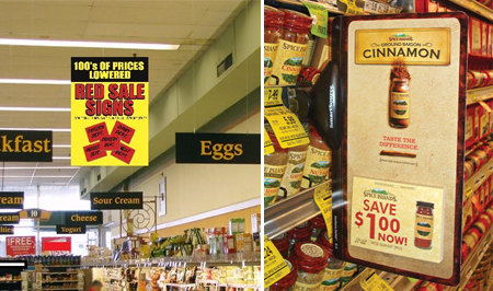 AML Designs creates store media signage that is designed to attract customers to promotional items and sale items.